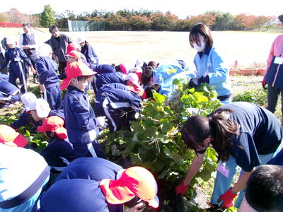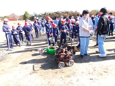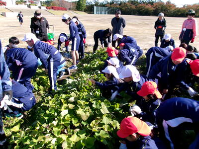 5月26日に園児、児童、生徒で植えたさつまいもを本日収穫しました。こども園さんが参加できなかったのが残念でしたが、おいしそうな大きなサツマイモがたくさんとれました。こども園さんにはおすそ分けしたいと思います。