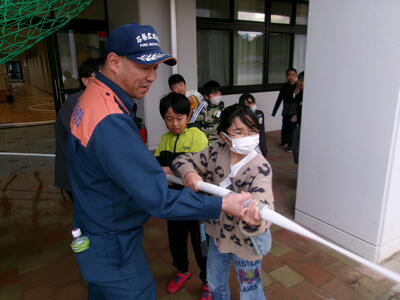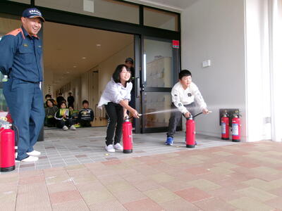 午前中の避難訓練に引き続き、午後は、3、4年生のBFC活動がありました。BFCとは、Boys and girls Fire Club の略称で、防火・防災の知識を身に付けるために活動することです。本校では、3、4年生が取り組みます。水消火器体験や消火栓からの放水体験、煙道体験を行いました。