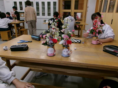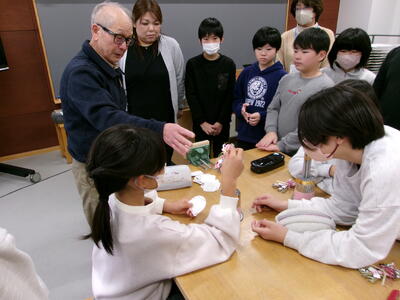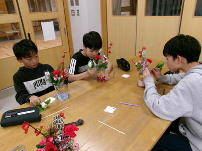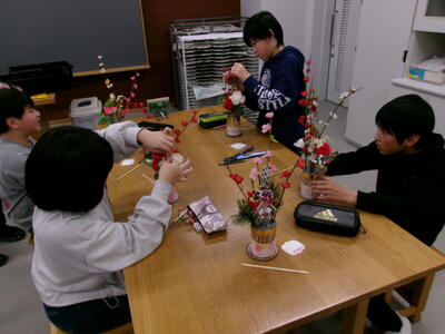 地域の先生、千葉五郎さんに来校していただき、毎年恒例の門松づくりを6年生が体験しました。土台や飾りつけの花、接着させるグルーガンまで準備していただきつくりました。児童それぞれの門松ができあがり、図工室がお正月の雰囲気になりました。できあがった門松に思い思いの言葉を貼り付け完成です。