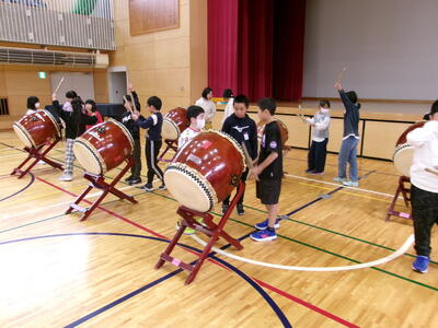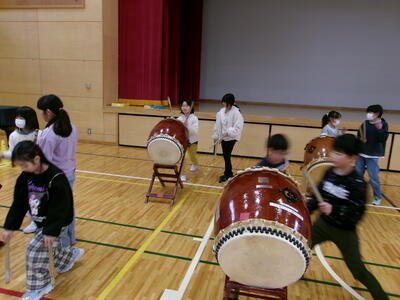 さて、本日から本校の伝統の一つである北上太鼓の引継ぎが始まりました。太鼓の叩き方や姿勢、動き等について、5年生から3、4年生が教えてもらいました。これから何度か練習を行い、次のステップへ進む予定です。