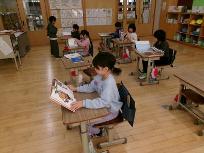 毎週木曜日は読書をしています。それぞれ図書室から借りてきている本や学級で借りている本、タブレットで読んでいる姿がみられました。時間があるときや外で遊べないときなどたくさん読んでほしいと思います。