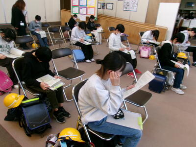今日の業前活動は、防災教育の時間でした。震災から石巻市の復旧、復興について考える時間でした。