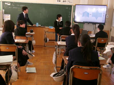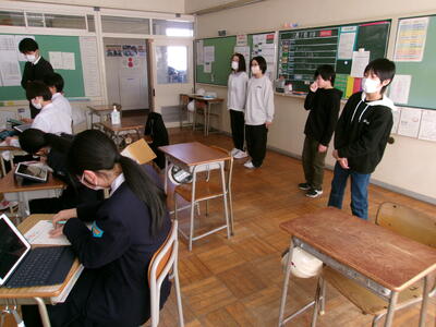 今日の5時間目6年生が中学校の入学説明会に参加しました。中学校の実際の授業を見せてもらいました。