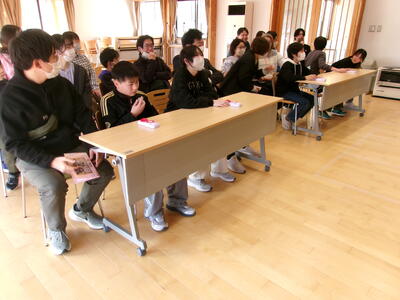 1、2年生、3、4年生の読書の時間に、中学生が読み聞かせを行ってくれました。中学生の声に聞き入っている様子がうかがえました。