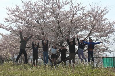満開となった北上地区の桜をさっそく見に行った学級がありました。