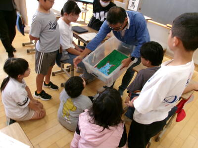 5年生こども環境教育 投稿: 校長 (12:23) 本日、志津川宿泊学習の時もお世話になった、海の自然史研究所事務局長の平井和也さんに来校していただき、海についての学習を行いました。平井さんには3、4年生の磯観察等でもお世話になっております。 Tweet -