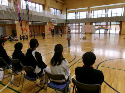 6年生を送る会 投稿: 校長 (12:20) 本日、児童会で6年生を送る会を実施しました。今日のために5年生が中心となり、計画から立案、準備等を進めてくれました。1年生から4年生も出し物の準備、練習を繰り返し行っていたため大盛り上がりの会でした。途中、北上太鼓の引継ぎもありとても楽しい会となりました。 Tweet -